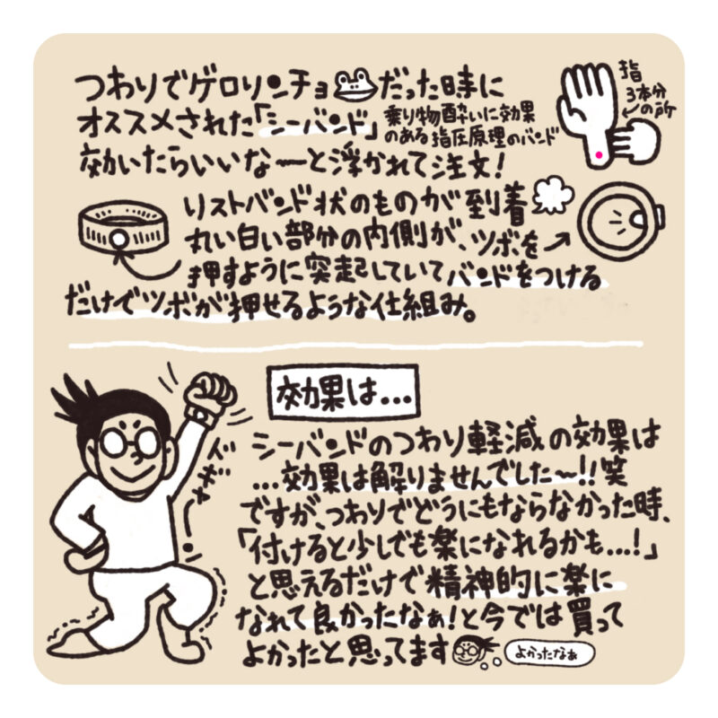 どうやらこれが“酔い止めのツボ”を押すような構造になっているらしい。